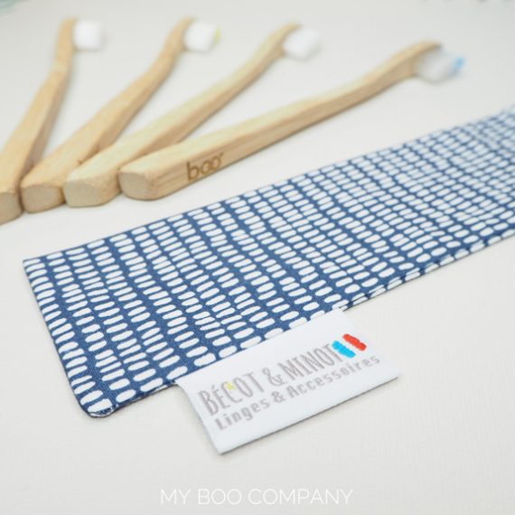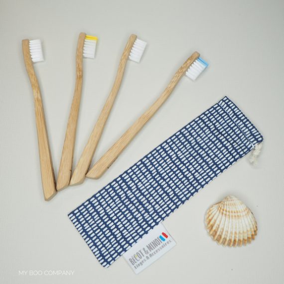 Ecopack 4 brosses à dents bambou enfant + Pochette de voyage Bécot et Minot - motifs bleus